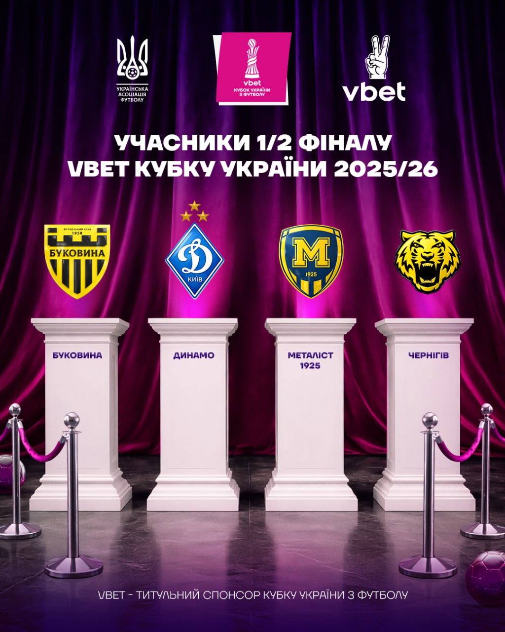 Боротьбу за трофей продовжують два представники УПЛ – київське "Динамо" і харківський "Металіст 1925", а також двоє учасників Першої ліги – "Буковина" (Чернівці) та "Чернігів".